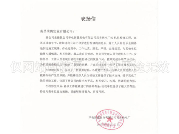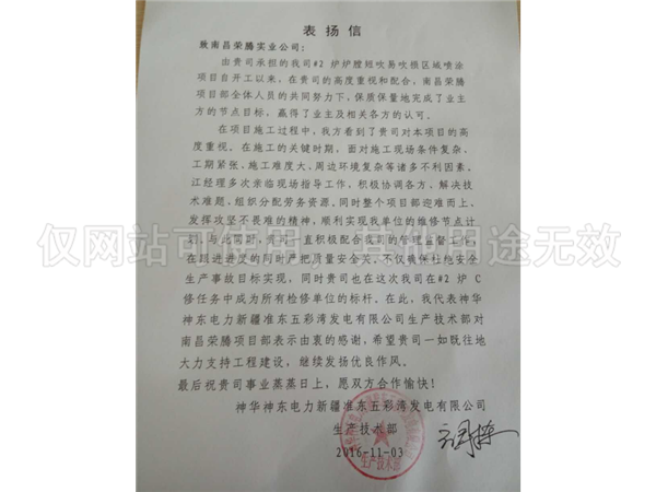 新疆昌吉電廠表?yè)P(yáng)信